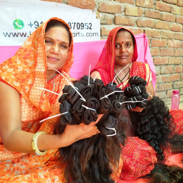 The sources of Indian hair are the temples in India. In India, it is a very common tradition for people to sacrifice their hair in certain specific temples in return for the prayers that have been answered by the respective deities. The Devotee goes to the temple and gets the hair shaved from the temple. The temple authorities collect all such shaved hair from the devotees and periodically auction the hair to the various bidders. The proceeds from the temple auctions are gradually pumped back into the community by the temple authorities in various charitable forms.